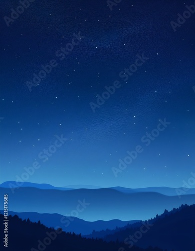 Breathtaking view of a mountain landscape silhouette under a mesmerizing starry night sky, creating a serene and magical atmosphere