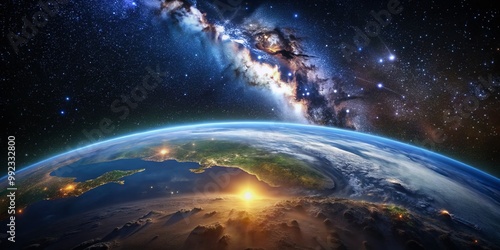 Breathtaking View of Earth from Space with Stars and Galaxies in the Background at Night Time