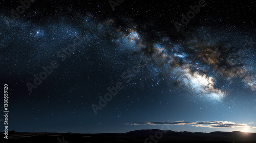 breathtaking view of night sky showcasing vibrant Milky Way galaxy filled with stars and cosmic dust, evoking sense of wonder and tranquility