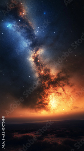 Breathtaking view of the Milky Way galaxy from an open field at night, stars twinkling above the horizon with rolling hills below, showcasing the vastness of space and the tranquil beauty of sky