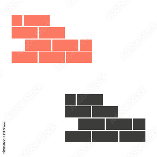 Brick wall icons. Color, black and white. Isolated on white background. Vector illustration.