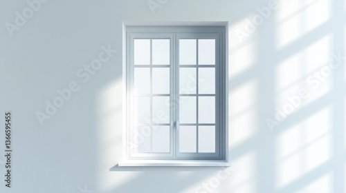 Bright and airy interior featuring a modern window casting soft shadows on a minimalist wall
