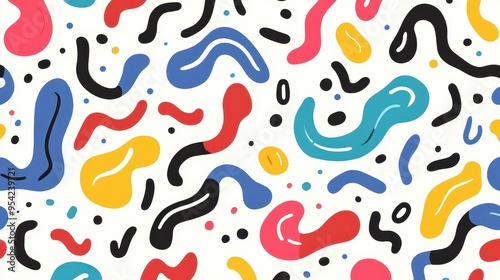 Bright and playful squiggle patterns with abstract lines and shapes perfect for kids parties or fun designs.