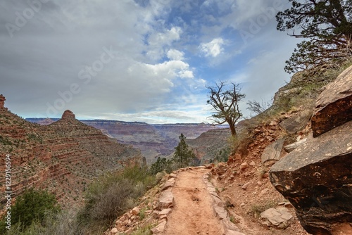 Bright Angel Trail in the gorge of the Grand Canyon, eroded rocky landscape, South Rim, Grand Canyon National Park, Arizona, USA, North America