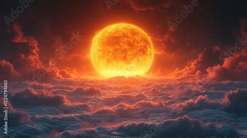 Bright Artificial Sun Above Alien Mountains High Resolution Picture