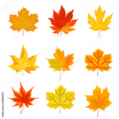 Bright autumn leaves set. Vector illustration isolated on white background.
