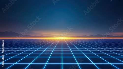 Bright blue grid lines illuminated against dark night sky, stunning abstract design