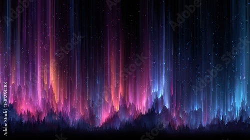 Bright colors dance across the night sky, casting a magical glow over a serene landscape. The vibrant hues of the aurora create a captivating spectacle that enchants viewers.