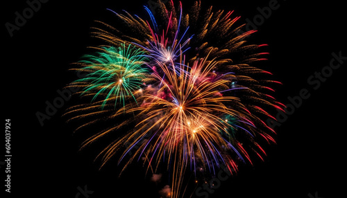 Bright colors exploding in vibrant firework display generated by AI