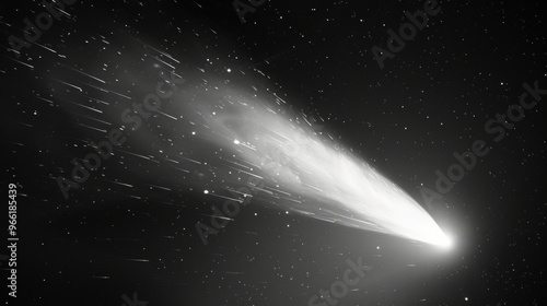 Bright comet close up in outer space with chaotic elements. Concept of astronomical phenomena, shooting star, cosmic event. Stunning celestial body