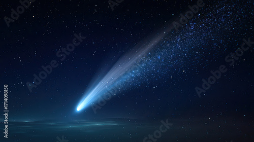 Bright comet with a long glowing tail crossing a dark starry sky.