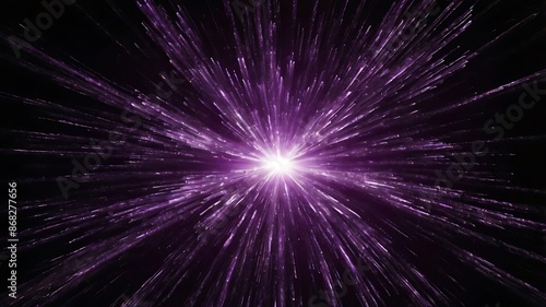 Bright explosion of purple lights with dark black background, abstract background wallpaper design