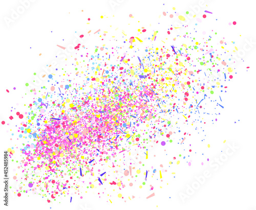 Bright explosion. Texture with colored geometric elements on white. Background with confetti. Pattern for design. Print for banners, posters, flyers and textiles. Greeting cards