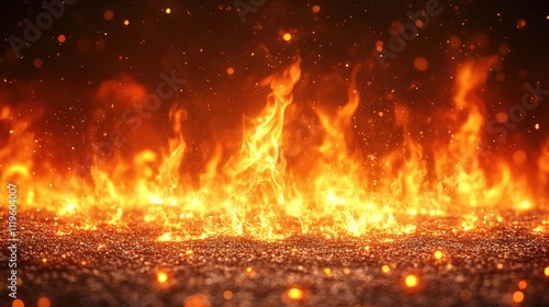 Bright flames flicker intensely, illuminating the dark surroundings with warm, glowing light