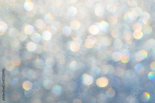 bright glitter background: bokeh effect from many colored lights on frozen glass, toning