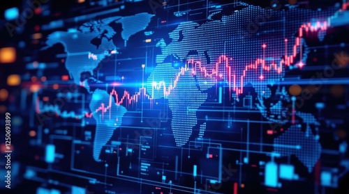 Bright graphical representation of global economic data trends, highlighting a dynamic flow of financial metrics and a modern technological