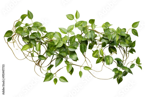 Bright green ivy extending down a white brick wall, isolated on a white background.