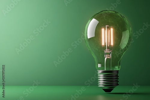 Bright Green Light Bulb Glowing Against a Simple Background in a Creative Art Setup at Dusk