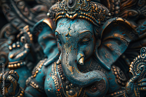 Bright holiday composition for happy Ganesh Chaturthi, abstract vivid composition consists of fictional unreal fantastic vision on background