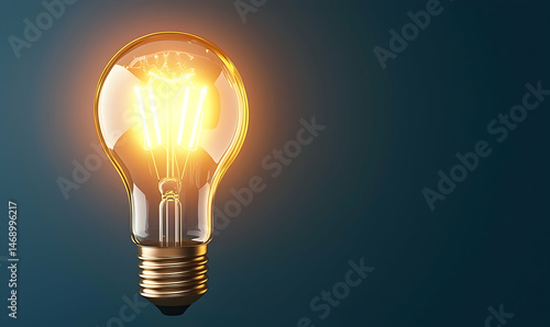 Bright light bulb glowing on a dark background, symbolizing innovation and ideas