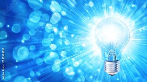 Bright light bulb illuminating a vibrant blue background