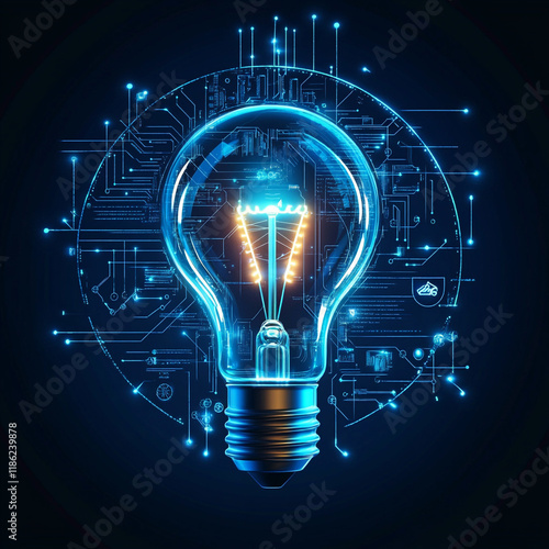 Bright light bulb symbolizes innovation and technology in a digital world of ideas