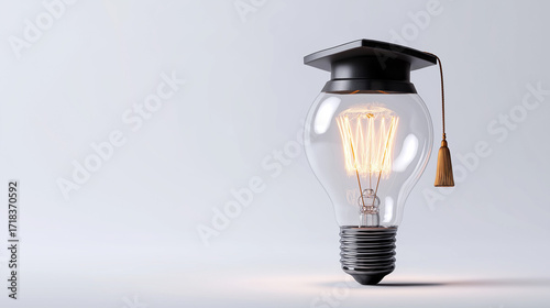 Bright light bulb with graduation cap on white background ,tech concept of education achievement degree