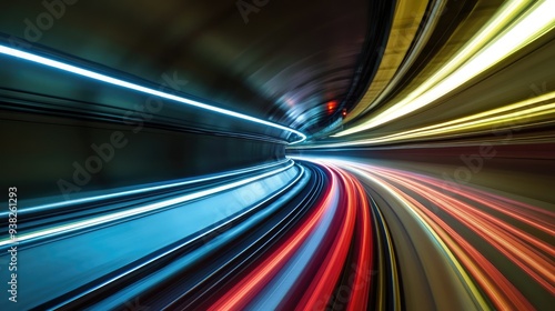 Bright light streaks cutting through a tunnel, generating a vibrant and dynamic visual effect full of speed.