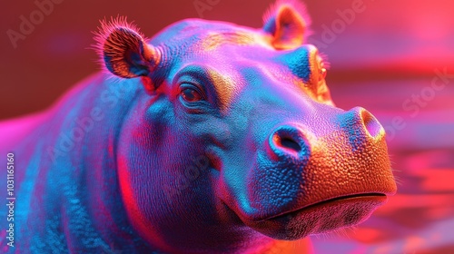Bright Neon Hippos in Cosmic Holography Style - Modern and Vibrant Rainbow Gradient with Iridescent Decorative Elements
