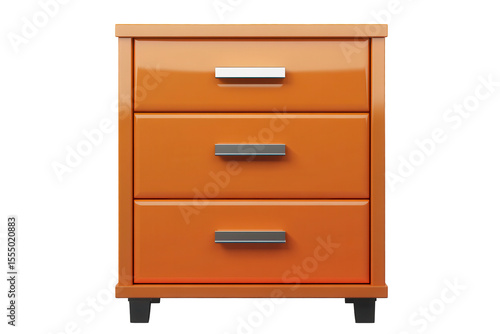 Bright orange filing cabinet designed with three drawers on a transparent background ideal for organizing office or home spaces with style and functionality