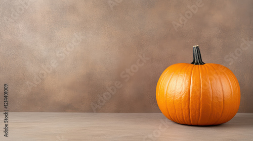 bright orange pumpkin isolated on dark brown background, perfect for autumn