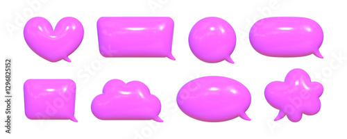 Bright pink 3D speech bubbles with shiny surface create a modern visual representation of communication and expression