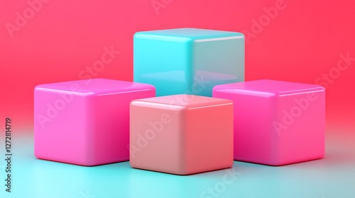 Bright Pink and Teal Cubes Minimalist Product Display. AI Generated