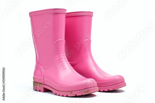 Bright pink rain boots isolated on a white background, representing style, functionality, and rainy-day preparedness.