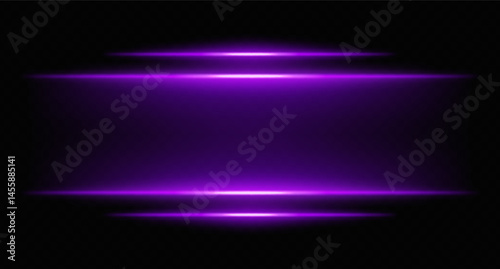 Bright purple horizontal neon lights with layered blur and shine. Futuristic glowing bars for sci-fi interfaces, HUD borders, and digital design frames.