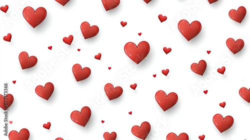 Bright red hearts fill a white background, creating a cheerful pattern perfect for Valentine's Day decorations, cards, and gifts.