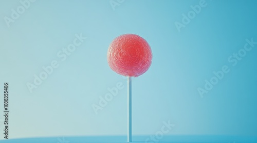 Bright red lollipop on a soft blue background showcasing its textured surface and playful shape for a fun and cheerful aesthetic.