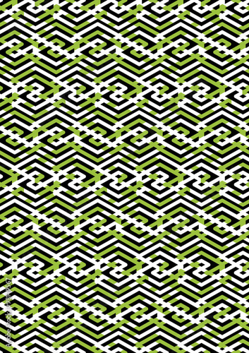 Bright rhythmic endless pattern with zigzag black lines, vivid c