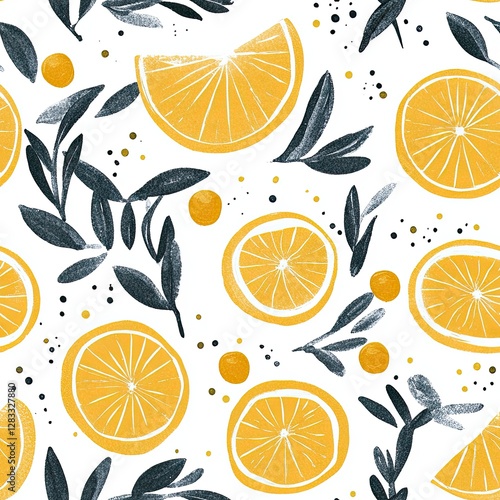 Bright seamless pattern featuring lemons and leaves with a vibrant design ideal for various creative projects