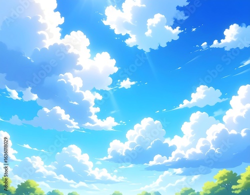 Bright sky, fluffy clouds, sunny day