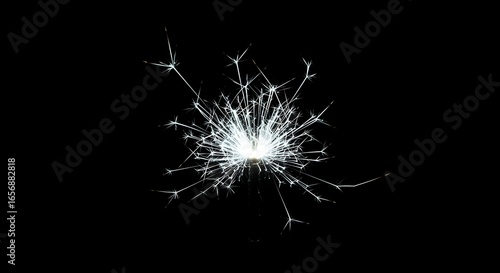 Bright Sparkler Firework Display with White Light and Sparks on Black Background