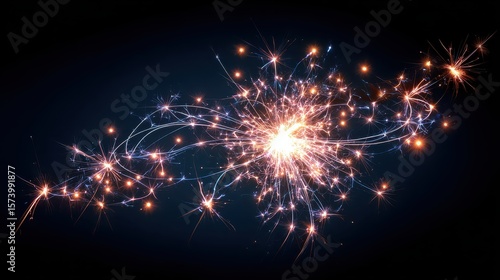 Bright sparklers explode against a dark background. Perfect for celebrating holidays, parties, or special occasions.
