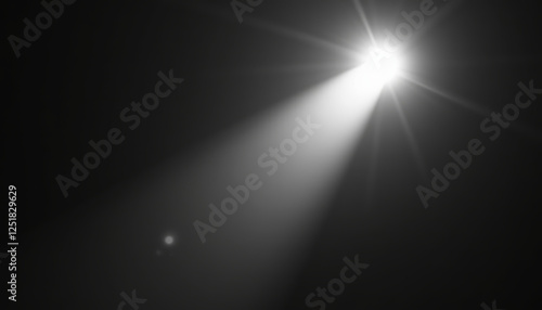 Bright spotlight shining in a dim space, perfect for highlighting subjects in theater or events, creating a captivating atmosphere.