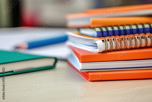 Bright stationery collection showcasing notebooks and pens on a workspace table