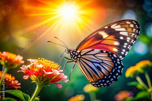 Bright Sunlight Butterfly Closeup on Flower - Overexposed Documentary Style