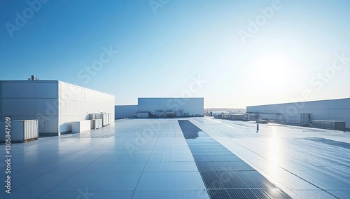 Bright Sunlight on a Modern Rooftop with Solar Panels