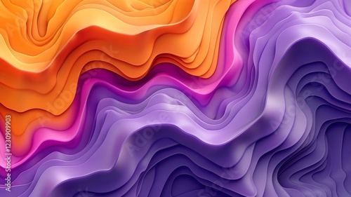 Bright waves of orange, pink, and purple intertwine, forming a dynamic and eye-catching abstract pattern. This design showcases flowing lines that evoke energy and creativity.