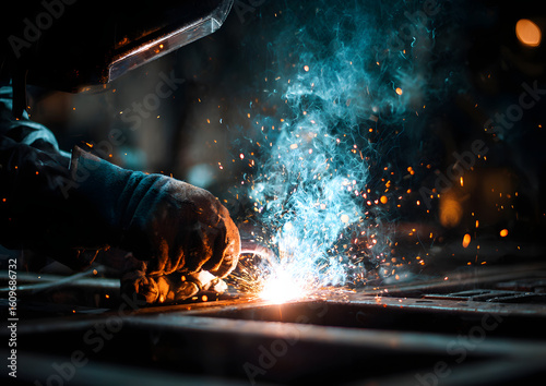 Bright welding work in dimly lit factory