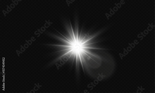 Bright white flash of light. Abstract image of flash of light and white star, Vector graphics.