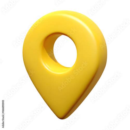 Bright yellow 3d rendered location pin marker icon symbol representing navigation and destination